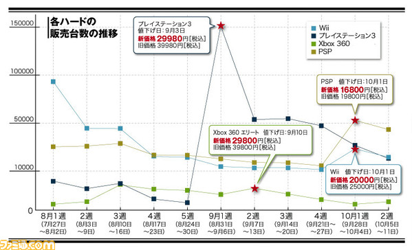 Famitsu magazine recently published an article concerning the Japanese sales trend of consoles that have received a price drop within the past several weeks; more specifically the Wii, Xbox 360, PS3, and PSP.