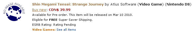 Yesterday, Siliconera spotted a listing on Amazon Canada's site for Shin Megami Tensei: Strange Journey for the DS.