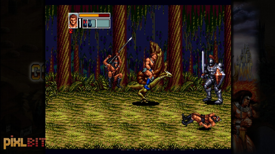Taking a page from Capcom’s excellent Final Fight Double Impact collection, this compilation of Golden Axe features a menu with all three games playing on screens. The first game is of course the original arcade cabinet, and Golden Axe II and III are displayed on old CRT televisions with a lovingly rendered Sega Genesis system perched on a table. All three of the games have a plethora of options to tweak, including the must-have ability to put a “scan line” filter over the screen to emulate the way these games looked on CRTs. I give major kudos to the fine folks at Sega for all the bells and whistles included in this collection; especially the ability to use the original arcade art as your wallpaper for the first Golden Axe. You can even stretch the picture out to fill a widescreen TV, but why would you do that?